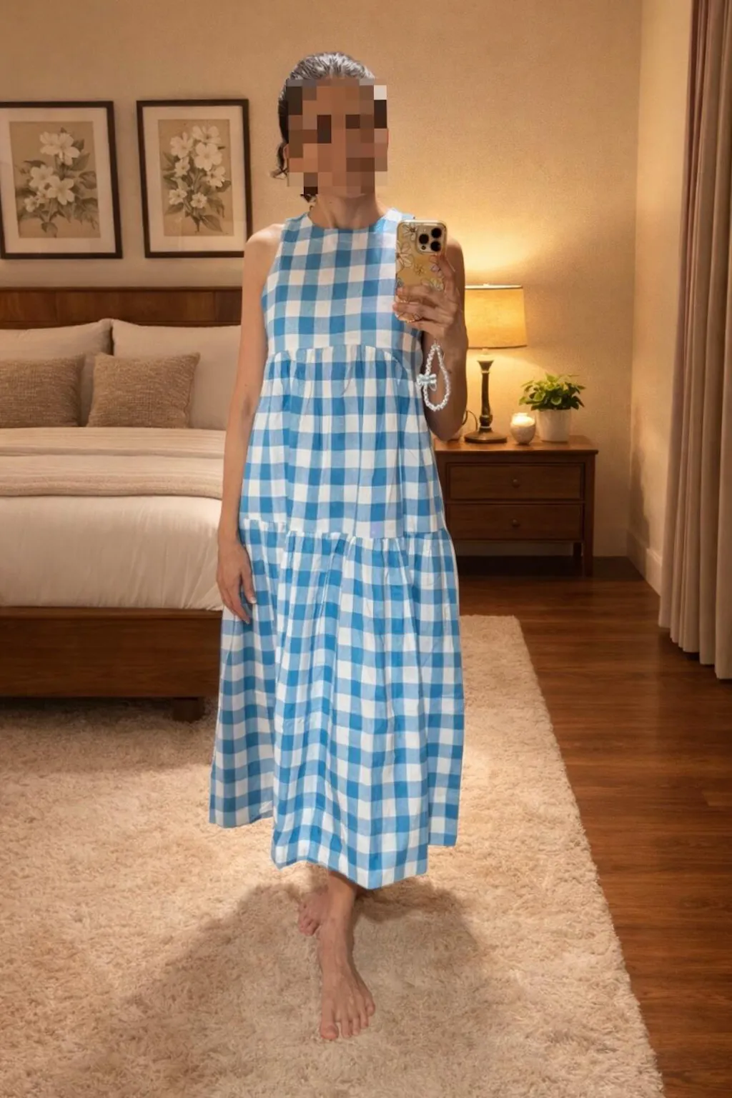 I waited for the gingham dress in orange colour because I just loved it. The dress is exactly what it looks like in the images. I will definitely recommend this to everyone. The fabric is pure cotton, size chart is accurate.